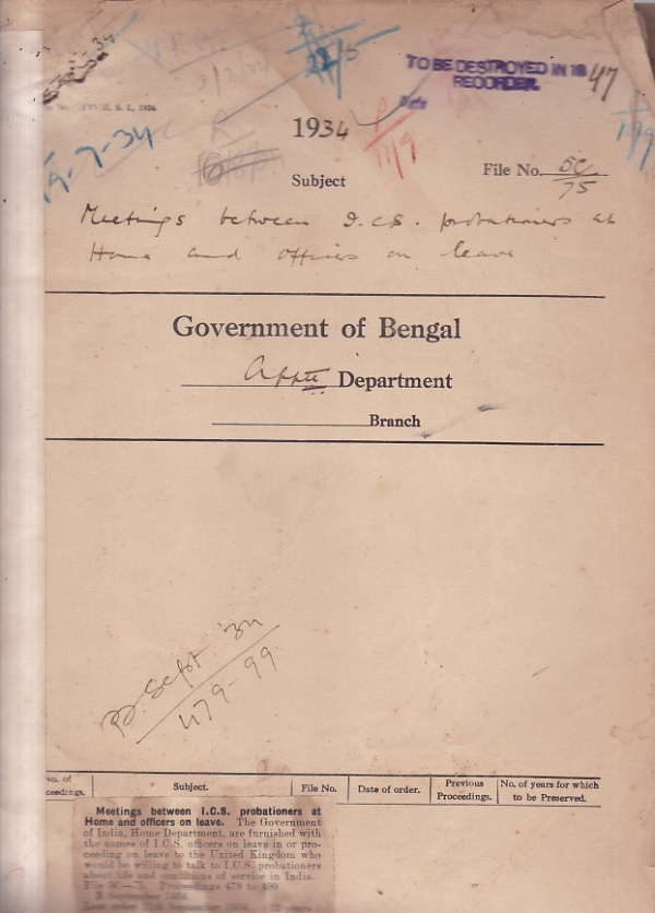 | Rack No. 02, Bundle No. 15, Sl No. 936 Application of Mr. H.C.V. Philpot, I.C.S. for retirement on proportionate pension. | Rack No. 02, Bundle No. 15, Sl No. 937 Purchase of a motor car by the Rev. A.G. Cowhan, Captain of the Indian. | Rack No. 02, Bundle No. 15, Sl No. 938 Restoration of the name of Babu Birendra Nath Chandra Sen Gupta Sessionion & District Judges. | Rack No. 02, Bundle No. 15, Sl No. 939 Meeting between I.C.S. probations and Home and officers. | Rack No. 02, Bundle No. 15, Sl No. 940 Grant of an advance from I.C.S. P.F. to Mr. H.G. Weight, I.C.S. District& Sessionion Judge, Midnapore. | Rack No. 02, Bundle No. 16, Sl No. 941 Return of military officers in civil employ for the quarter during 31.3.34. | Rack No. 02, Bundle No. 16, Sl No. 942 Employment of temporary staff in the Tippera Collectorate for work in connection with the general election with the general election to the Legislative Assembly. |