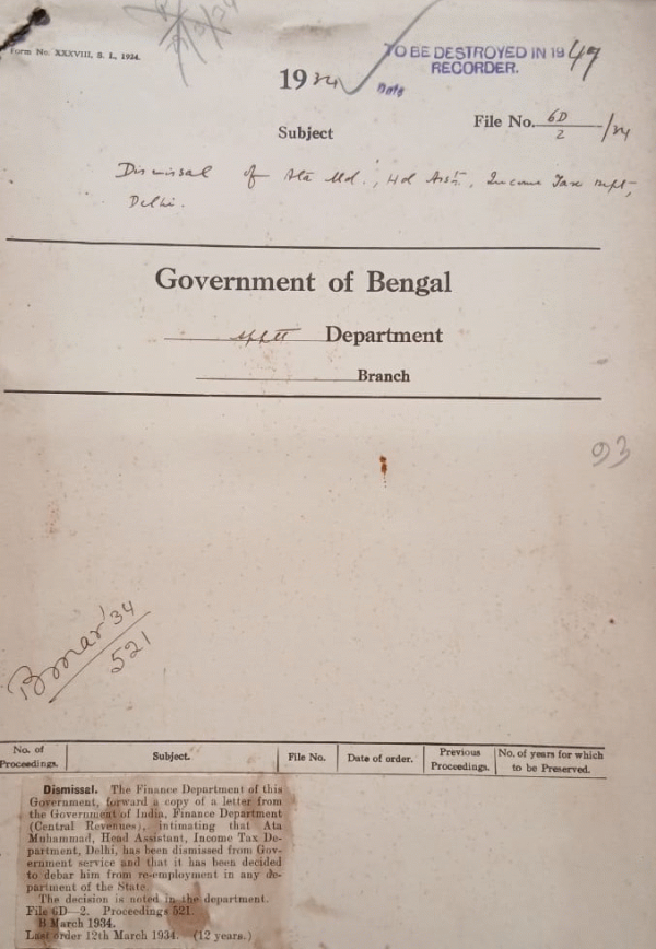 | Rack No. 2, Bundle No. 05, Sl No. 290 Appointment of Mr. K. Tolson A. Superintendentof Police as tools S.P. Chittagong. | Rack No. 2, Bundle No. 05, Sl No. 291 Confirmation of Mauvli Muhammad Keymuddin Ahmed Sub-Deputy Collector in the B.G.C.S. | Rack No. 2, Bundle No. 05, Sl No. 292 Appointment in the grade of commissioners of divisions. | Rack No. 2, Bundle No. 05, Sl No. 293 Dismissal of Ata Muhammad Head Assistant Income Tax Department. | Rack No. 2, Bundle No. 05, Sl No. 294 Council questions by Raja Bahadur Bhurendra Narayan Singha the list of Scheduled costs. | Rack No. 2, Bundle No. 05, Sl No. 295 Budget Provision for the pay and allowance of the A.R.O. | Rack No. 2, Bundle No. 05, Sl No. 296 Revised estimates for 1933-34 and budget estimates 1934-35 under election for the Indian and provincial legislatures. |