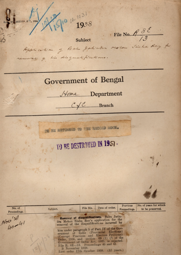 Application of Babu Jatindra Mohan Sinha Roy’s for the removal of the disqualifications.