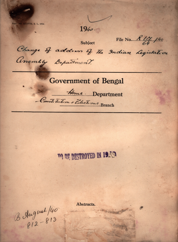 | Rack No. 08, Bundle No. 15; SI No. 946 Extension of the excess Profits Tax Act, 1940 to the Partially Excluded areas in Bengal. | Rack No. 08, Bundle No. 15; SI No. 947 Extension of the Indian Coinage ordinance, 1940 to the partially excluded area in Bengal. | Rack No. 08, Bundle No. 15; SI No. 948 Non-Official Bills in the Assembly & the Council | Rack No. 08, Bundle No. 15; SI No. 949 Change of address of the I.L.A. Department. | Rack No. 08, Bundle No. 15; SI No. 950 Installation of a telephone in room no-3, 2nd floor, writers Building, allotted to the Parliamentary Secretary. | Rack No. 08, Bundle No. 15; SI No. 951 Amendments to the Bengal Public Service Commission Regulations. | Rack No. 08, Bundle No. 15; SI No. 952 Amendments to electoral roll European Constituency of central Legislative Assembly by inclusion of name of Mr. C.P. Lawson. |