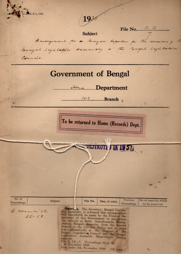 Arrangement for a Bengali Reporter for the Sessions of the Bengal legislative Assembly.