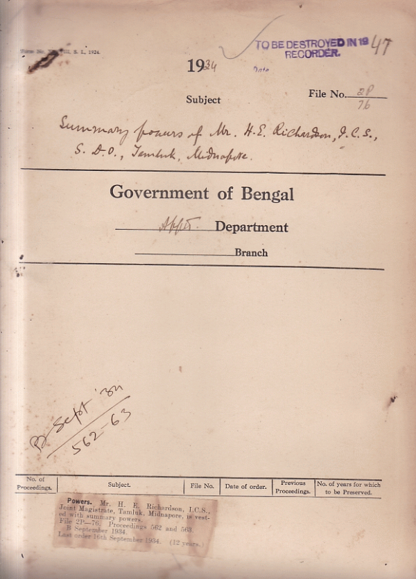 Summary powers of Mr. H. E. Richardson, I.C.S. S.D.O., Tamluk, Midnapore.