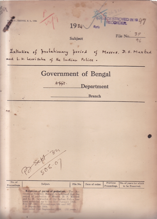 Extension of probationary period of Messrs. D.S. Maxted and L.H. Lewiston of the Indian Police.