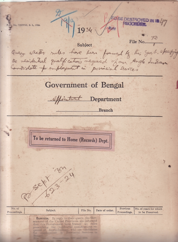 Domicile of Anglo Indian Candidates for employment to provincial Services.