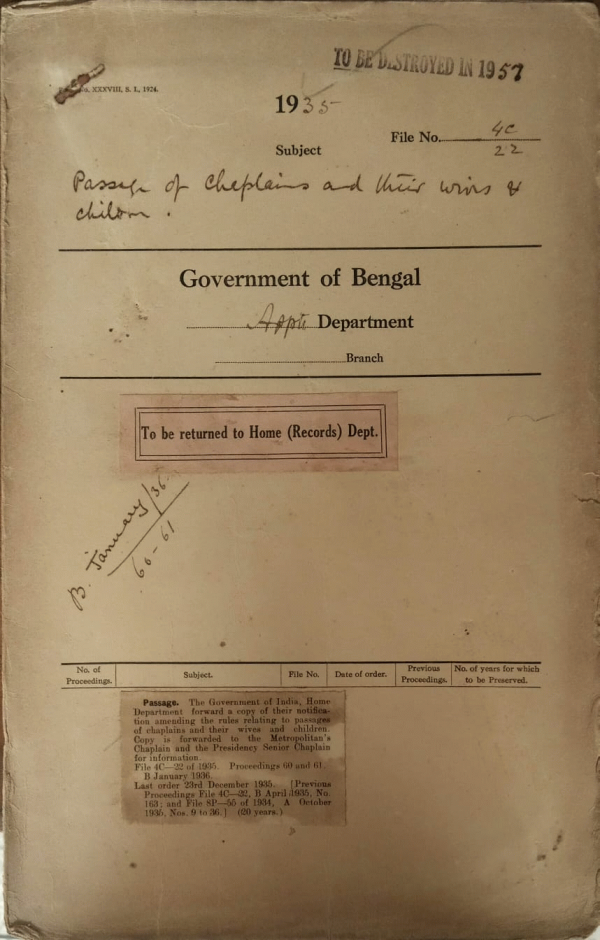 | Rack No. 2, Bundle No. 26, Sl No. 1513 Subventions to British universities for training I.C.S. Probationers. | Rack No. 2, Bundle No. 26, Sl No. 1514 Address of Pabna Anjuman-I-Islamia to be presented to H.E. the Governor. | Rack No. 2, Bundle No. 26, Sl No. 1515 Instrument of Mr. W.E. Duckfiled Deputy Commissioner of Police Calcutta with usual Magisterial Powers. | Rack No. 2, Bundle No. 26, Sl No. 1516 Passage of Chaplains and their wives and Children. | Rack No. 2, Bundle No. 26, Sl No. 1517 Appointment of Babu Subodh Chandra Deputy Sadar Sub-Divisional Officer Rajshahi. | Rack No. 2, Bundle No. 26, Sl No. 1518 Subject for discussion at the Commissioners conference in Darjeeling on the Cue of the Puja Holidays. | Rack No. 2, Bundle No. 26, Sl No. 1519 List of Retrenched personnel considered fit for re-employment. |