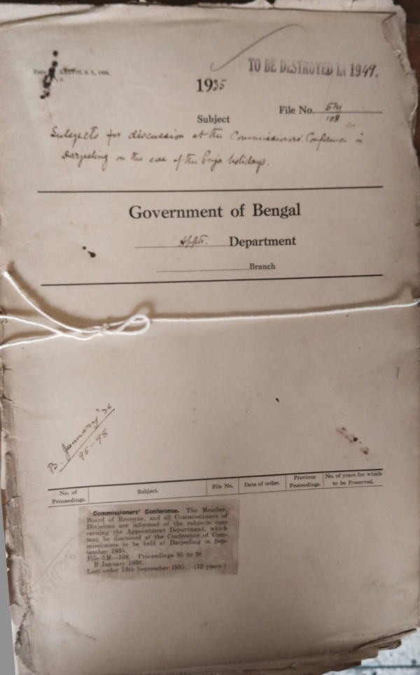 Subject for discussion at the Commissioners conference in Darjeeling on the Cue of the Puja Holidays.