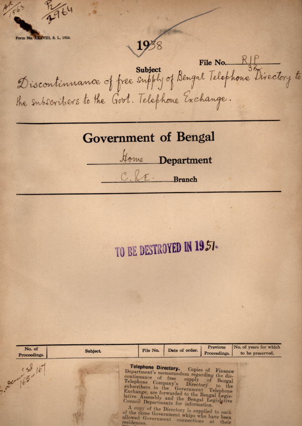 Discontinuance of free supply of Bengal Telephone Directory to the Subscribers to the govt. Telephone Exchange.