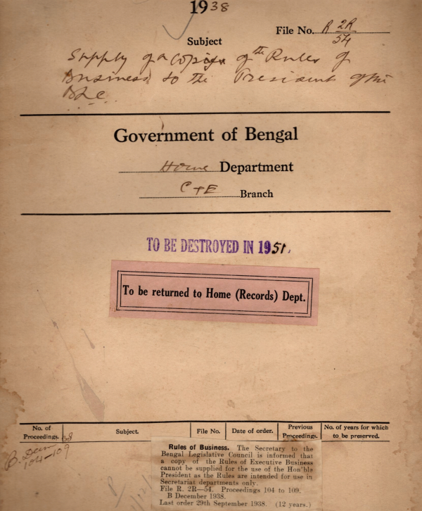 | Rack No. 08, Bundle No. 08, SI No. 484 Discontinuance of free supply of Bengal Telephone Directory to the Subscribers to the govt. Telephone Exchange. | Rack No. 08, Bundle No. 08, SI No. 485 Appointment of additional Staff in the Bengal Legislative Assembly Department. | Rack No. 08, Bundle No. 08, SI No. 486 Corrigenda to the council of state and the legislative assembly electoral Rules & Regulations. | Rack No. 08, Bundle No. 08, SI No. 487 Supply of a copy of the Rules of Business to the president of the B.L.C. | Rack No. 08, Bundle No. 08, SI No. 488 Proposal for wiring for five additional telephones in the rooms occupied by the opposition whip, govt. whip, press, Nationalist and Scheduled caste in the Bengal Legislative Building. | Rack No. 08, Bundle No. 08, SI No. 489 A.Q. by Mr. Moslem Ali Mollah, M.L.A. regarding re-appointment of retired govt. servants to any post under govt. | Rack No. 08, Bundle No. 08, SI No. 490 Supply of Bengal Legislature Manual to M.L.A.S. |