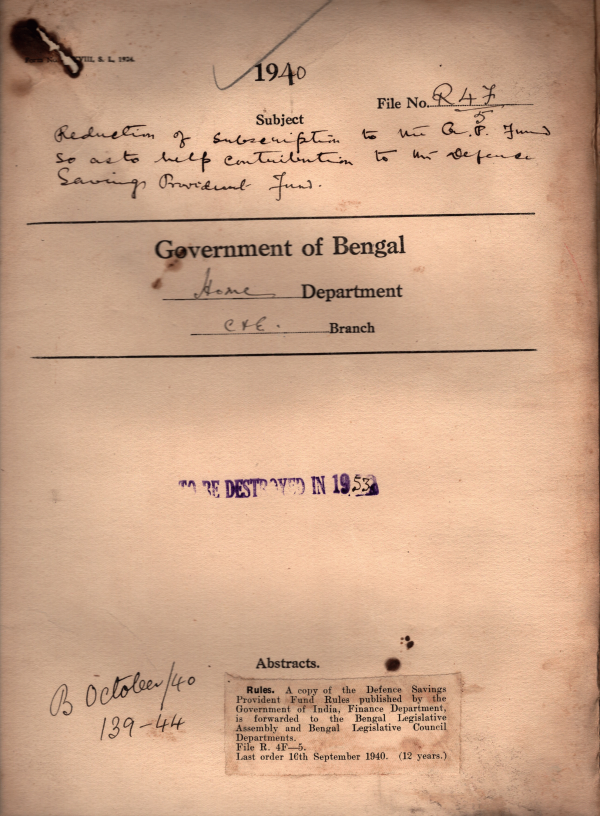 | Rack No. 08, Bundle No. 16; SI No. 1000 Complaint regarding acoustics arrangements in the Legislative Chamber. | Rack No. 08, Bundle No. 16; SI No. 1001 Previous consultation with the P.S.C. in regard to the alteration of the exiting qualifications. | Rack No. 08, Bundle No. 16; SI No. 1002 Procedure a memorandum issued by the govt. of India to all departments. | Rack No. 08, Bundle No. 16; SI No. 1003 Reduction of subscription to the G.P. fund so as to help continuation to the defense savings P.F. | Rack No. 08, Bundle No. 16; SI No. 1004 Inclusion of the name of an unqualified Pension in the electoral roll for the Tippera North East. | Rack No. 08, Bundle No. 16; SI No. 1005 Recovery of passage contribution with officers in foreign service. | Rack No. 08, Bundle No. 16; SI No. 1006 Employment of a temporary peon in the office of the Deputy Commissioner, Darjeeling. |