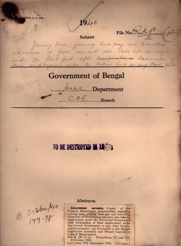 | Rack No. 08, Bundle No. 16; SI No. 1013 Govt. resolution on War in the B.L.A. | Rack No. 08, Bundle No. 16; SI No. 1014 Assent of H.E. the governor to the Bengal revenue Bill, 1940. | Rack No. 08, Bundle No. 16; SI No. 1015 Revised edition of the “Magistrate Inspections Manual”. | Rack No. 08, Bundle No. 16; SI No. 1016 Joining time pay and travelling allowance of govt. Servants. | Rack No. 08, Bundle No. 16; SI No. 1017 Draft governors’ rules trade Union Labour Constituency. | Rack No. 08, Bundle No. 16; SI No. 1018 Advance from the G.P. fund or Contributing Provident Fund for payment of Marriage Expenses. | Rack No. 08, Bundle No. 16; SI No. 1019 Arrangement of governor from the monsoon Session of the Legislature, 1940. |
