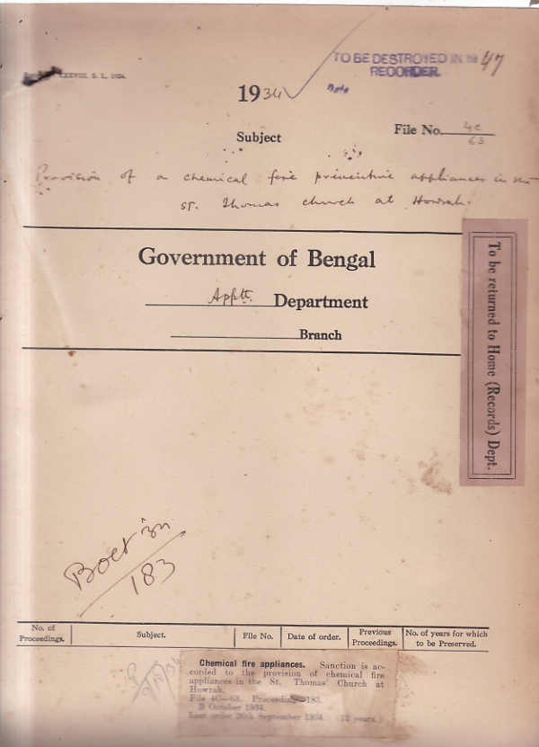 Provision of a chemical fire Applications in the S.T. Thomas Church at Howrah.
