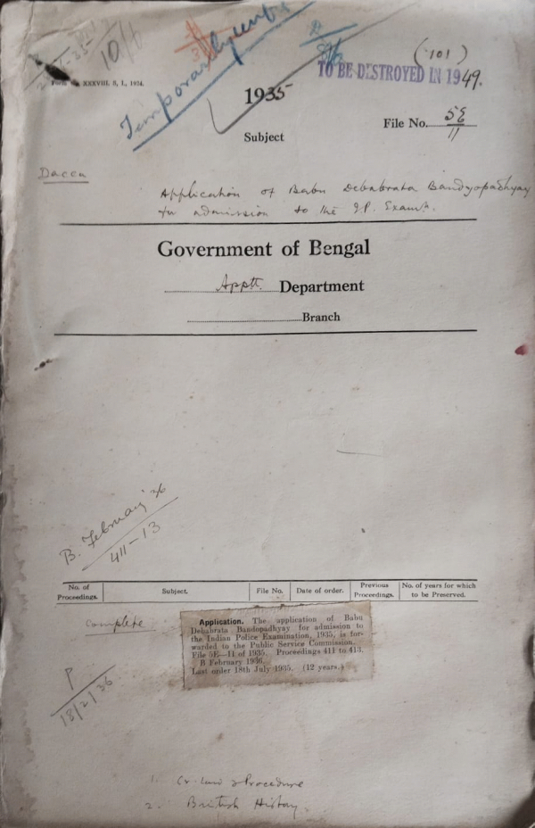 | Rack No. 2, Bundle No. 26, Sl No. 1539 Application of Babu Biroy Krishna Hazra for admission to the I.P. Examination. | Rack No. 2, Bundle No. 26, Sl No. 1540 Application of Babu Bimal Chandra Sen for admission to the I.P. Examination. | Rack No. 2, Bundle No. 26, Sl No. 1542 Application of Babu Sudhir Chandra Bhattachrji for admission to the I.P. Examination. | Rack No. 2, Bundle No. 26, Sl No. 1543 Application of Babu Bebarata Bandopadya Deputy for admission to the I.P. Examination. | Rack No. 2, Bundle No. 26, Sl No. 1544 Application of Babu Phanindra Nath Roy for admission to the I.P. Examination. | Rack No. 2, Bundle No. 26, Sl No. 1545 Application of Maulvi. A.B.M. Abdul Aziz for admission to the I.P. Examination. | Rack No. 2, Bundle No. 26, Sl No. 1546 Application of Babu Mrityunjoy Goswami for admission to the I.P. Examination. |