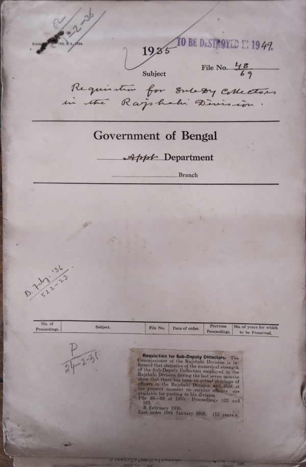National Archives of Bangladesh SB-Room No 104 | Rack No. 2, Bundle No. 26, Sl No. 1549 (Browse shelf(Opens below)) | 1 | 1 | 70370 |