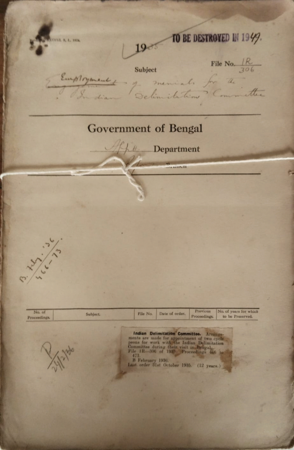 | Rack No. 2, Bundle No. 26, Sl No. 1560 Posting of Sub-Deputy Collectors during December 1935 and January 1936. | Rack No. 2, Bundle No. 26, Sl No. 1561 Placing of Services of Mr. A.J. Dash, I.C.S. at the disposal of Legislative Department. | Rack No. 2, Bundle No. 26, Sl No. 1562 Special repairs to certain un endowed tombs in the European cemetery at Jessore. | Rack No. 2, Bundle No. 26, Sl No. 1563 Requisition from Maulvi Muhammad Yusuf for copies of Certain papers. | Rack No. 2, Bundle No. 26, Sl No. 1564 Passage contribution for British military officer's warrant officers non-commissioned officers and men of the Army in India lent to non-military department and foreign employers. | Rack No. 2, Bundle No. 26, Sl No. 1565 First class powers of Maulvi Khurshed Alam Chaudhury Deputy Magistrate on probation Dacca. | Rack No. 2, Bundle No. 26, Sl No. 1566 Appointment of temporary Sub-Divisional lecher of Gaibandha Rangpur. |