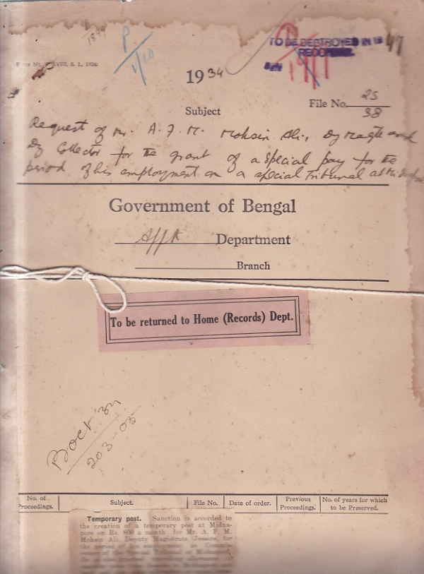 Request of Mr. A.F.M. Mohsin Ali Deputy Magistrate And Deputy collector for the grant of a special pays for the period of his appointment of a special Tribunal at Midnapore.