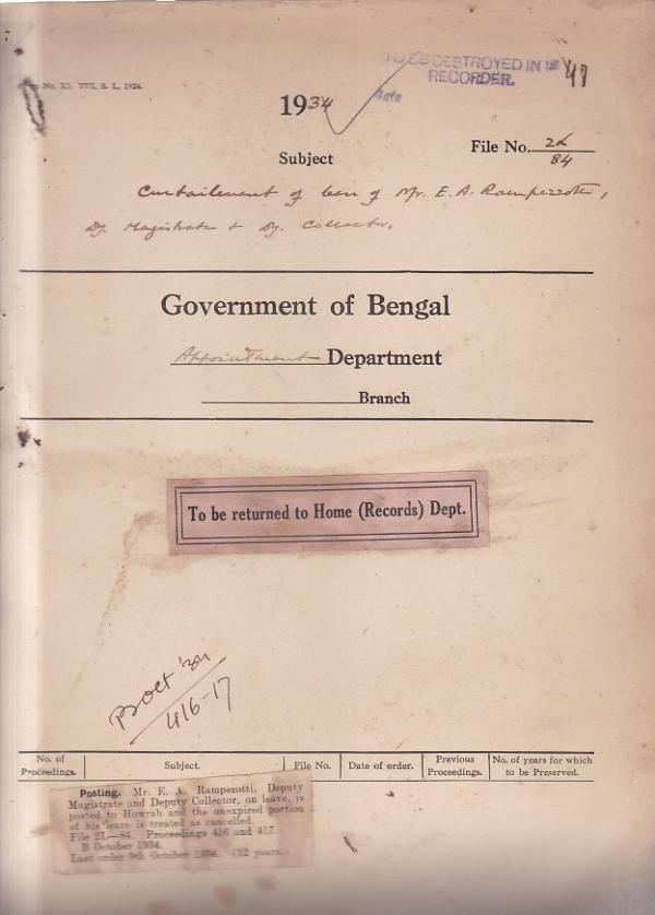 Containment of Babu Mr. E.A. Rampezotti Deputy Magistrate and Deputy Collector.