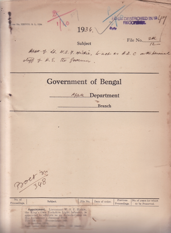Appointment of Lt. W.S.F. Hickie to act as A.D.C. on the personal staff of H.E. the personal staff of H.E. the