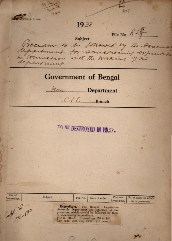 | Rack No. 08, Bundle No. 09, SI No. 529 Rules of Fees on applications for govt. service. | Rack No. 08, Bundle No. 09, SI No. 530 Accounts of expenditure under the Head “25 General administration for legislation, 1937-38”. | Rack No. 08, Bundle No. 09, SI No. 531 Council questions regarding appointment temporary officers and special officer in the Secretarial. | Rack No. 08, Bundle No. 09, SI No. 532 Procedure of A. Department for Secretariat expenditure, in Connection with the working of the department. | Rack No. 08, Bundle No. 09, SI No. 533 Purchase of the Electoral rules of other provincial govt. | Rack No. 08, Bundle No. 09, SI No. 534 Publicity of the views and Schemes of govt. | Rack No. 08, Bundle No. 09, SI No. 535 Rules for the destruction of records which don’t relate to the Purposes of this province. |