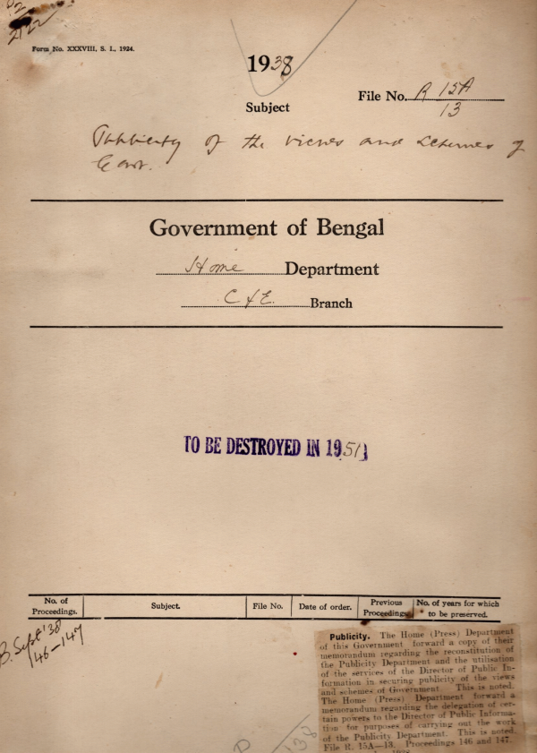 | Rack No. 08, Bundle No. 09, SI No. 531 Council questions regarding appointment temporary officers and special officer in the Secretarial. | Rack No. 08, Bundle No. 09, SI No. 532 Procedure of A. Department for Secretariat expenditure, in Connection with the working of the department. | Rack No. 08, Bundle No. 09, SI No. 533 Purchase of the Electoral rules of other provincial govt. | Rack No. 08, Bundle No. 09, SI No. 534 Publicity of the views and Schemes of govt. | Rack No. 08, Bundle No. 09, SI No. 535 Rules for the destruction of records which don’t relate to the Purposes of this province. | Rack No. 08, Bundle No. 09, SI No. 536 Order of Circulation of cases among the Honorable Ministers. | Rack No. 08, Bundle No. 09, SI No. 537 Rebate on furs of air Journeys purposed by the govt. Servants. |