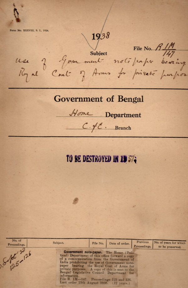 | Rack No. 08, Bundle No. 09, SI No. 540 Ruling of the Honorable Speaker, B.L.A. Section 127, rules and standing orders. | Rack No. 08, Bundle No. 09, SI No. 541 Administration of the Federal Subject “Salt” by the Provincial govt. | Rack No. 08, Bundle No. 09, SI No. 542 Subjection for discussion at the conference of comers and Head of Department, 1938. | Rack No. 08, Bundle No. 09, SI No. 543 Use of govt. note paper bearing the royal coat of Arms for private purposes. | Rack No. 08, Bundle No. 09, SI No. 544 B.L.A. building at an estimated cost of Rs. 51 only for two windows. | Rack No. 08, Bundle No. 09, SI No. 545 Establishment of temporary staff in C.P.M.’s officer for work for by election in the Calcutta West Bengal. | Rack No. 08, Bundle No. 09, SI No. 546 Arrangements for the election tribunal petition against the election of K.B. Md. Anwarul Azim to the B.L.A. |