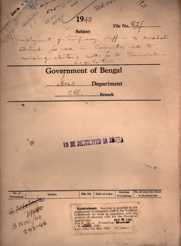 Employment of temporary staff in the Noakhali Collectorate for work in the revision of electoral rolls for the provincial Legislature.