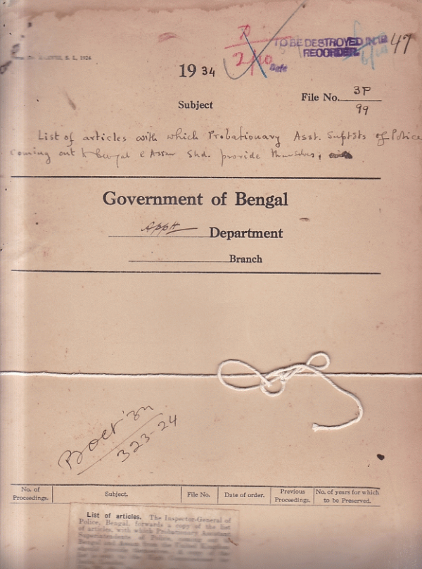 List of Articles with which pro-cautionary Assistant Sepsis of Police Coming out to Bengal and Assam Should provide themselves.