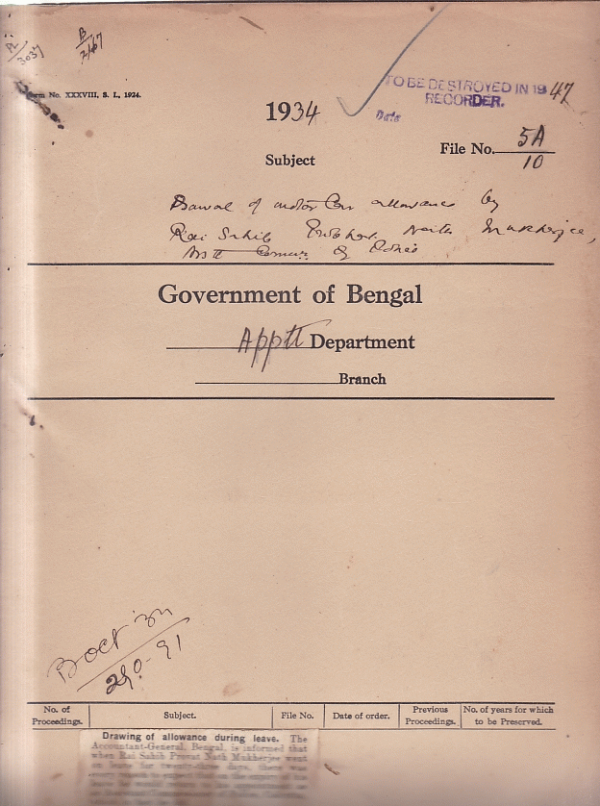 General of under Governmentallowance by Rai Sahib provat Nath Mukherjee Assistant Commissioner of Police.