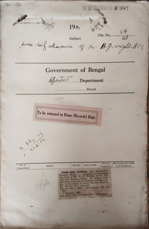 | Rack No. 2, Bundle No. 27, Sl No. 1571 Amendment in the schedule to the notification regarding delegations under rules 34 & 53 of the civil services Rules. | Rack No. 2, Bundle No. 27, Sl No. 1572 Expenses at the Indian Delimitation on committee in connection with their visit in Bengal. | Rack No. 2, Bundle No. 27, Sl No. 1573 Arrangement for inclusion of names of drivers of motor vehicles paying licensee tees at the Bengal legislative Assemble under the reformed Constitution. | Rack No. 2, Bundle No. 27, Sl No. 1574 Arrear daily allowance of Mr. H.G. Wight .I.C.S. | Rack No. 2, Bundle No. 27, Sl No. 1575 Complaint against the Conduct of Mr. Saleh A. Rahim Deputy Magistrate & Deputy Collector. | Rack No. 2, Bundle No. 27, Sl No. 1576 Exchange of official publication on reproach basis. | Rack No. 2, Bundle No. 27, Sl No. 1577 Presentation of silver camlet to Mr. J.R.Blair I.cs D. M. Dacca. |
