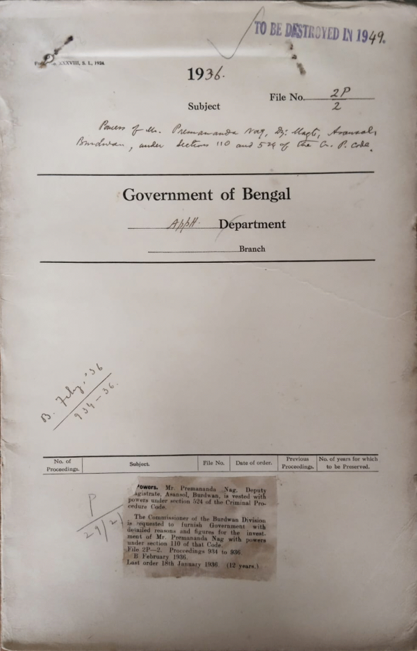 | Rack No. 2, Bundle No. 27, Sl No. 1591 Appointment of Rev. A.J. Pearson, Chaplain of Dinajpur to be chaplain of Dinajpur to be Chaplain of St. Stephens. | Rack No. 2, Bundle No. 27, Sl No. 1592 Confirmation of the Revd. T.B. Randolph as a Junior Chaplain. | Rack No. 2, Bundle No. 27, Sl No. 1593 Posting of transfer of certain Military intelligence officers as Additional Superintendent of Police. | Rack No. 2, Bundle No. 27, Sl No. 1594 Powers of Premanda Nag, Deputy Magistrate Asansol, Burdwan. | Rack No. 2, Bundle No. 27, Sl No. 1595 Arrears of Pay and T.A. bills due to the Late Mr. Azizul Haq, of the the Indian Police. | Rack No. 2, Bundle No. 27, Sl No. 1596 Memoranda of particulars regarding Appointment of Chaplains to the I.E. Establishment. | Rack No. 2, Bundle No. 27, Sl No. 1597 Posting of Babu Mani Mohan Ghosh, Deputy Magistrate & Deputy Collector, Dacca. |