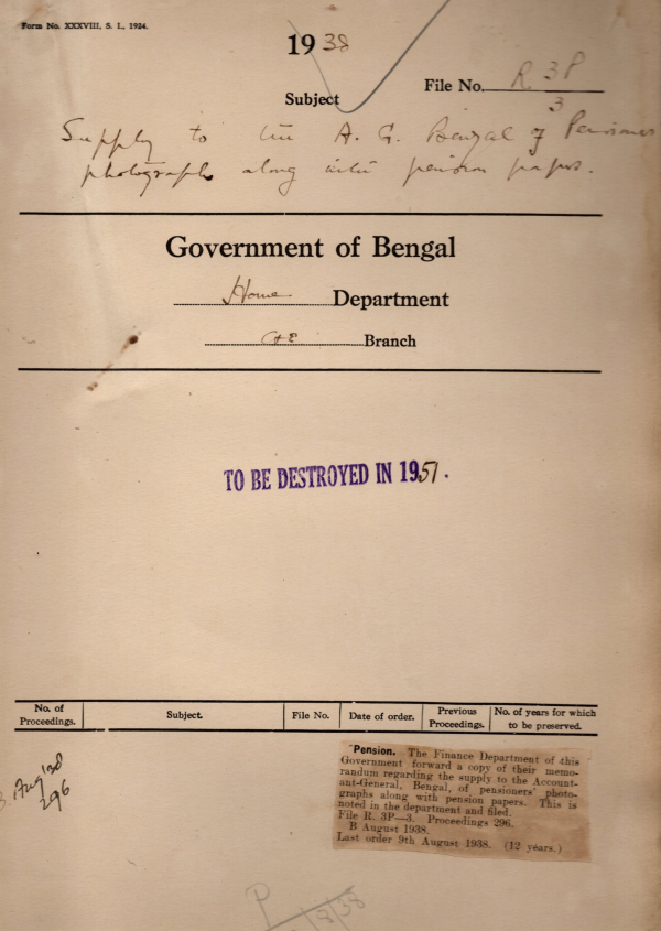 Supply to the A.G. Bengal of Pension Photographs along with pension papers.