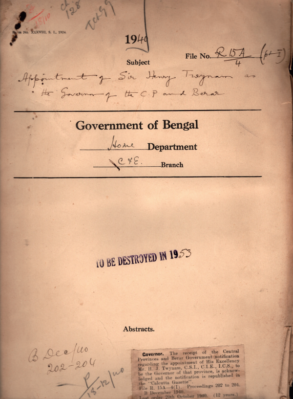 Appointment of Sir Henry Twynam as the Governor of the C.P. & Berar.