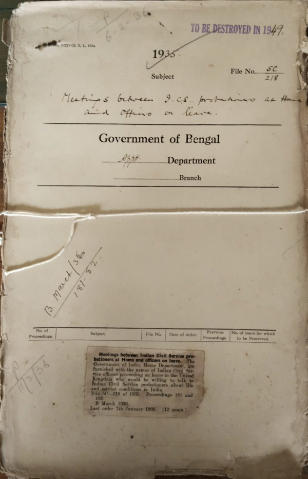 | Rack No. 2, Bundle No. 28, Sl No. 1616 Printing of electoral rolls of the council of state. | Rack No. 2, Bundle No. 28, Sl No. 1617 The rules of exam of the general recruitment to the provincial and subordinate service. | Rack No. 2, Bundle No. 28, Sl No. 1618 Acting appointment of provincial police officers to officiate to the Indian Police. | Rack No. 2, Bundle No. 28, Sl No. 1619 Meetings between I.C.S. probationers at home and officers on leave. | Rack No. 2, Bundle No. 28, Sl No. 1620 House allowance of the rent Rs. 40 per month Chaplain fort William Calcutta. | Rack No. 2, Bundle No. 28, Sl No. 16203 Appointment of the Rev. T.G.C. devall as a Chaplain on probation in the I.E. Estt. | Rack No. 2, Bundle No. 28, Sl No. 1621 Number of figures on the provincial electoral rolls of the Bengal Legislative assembly. |