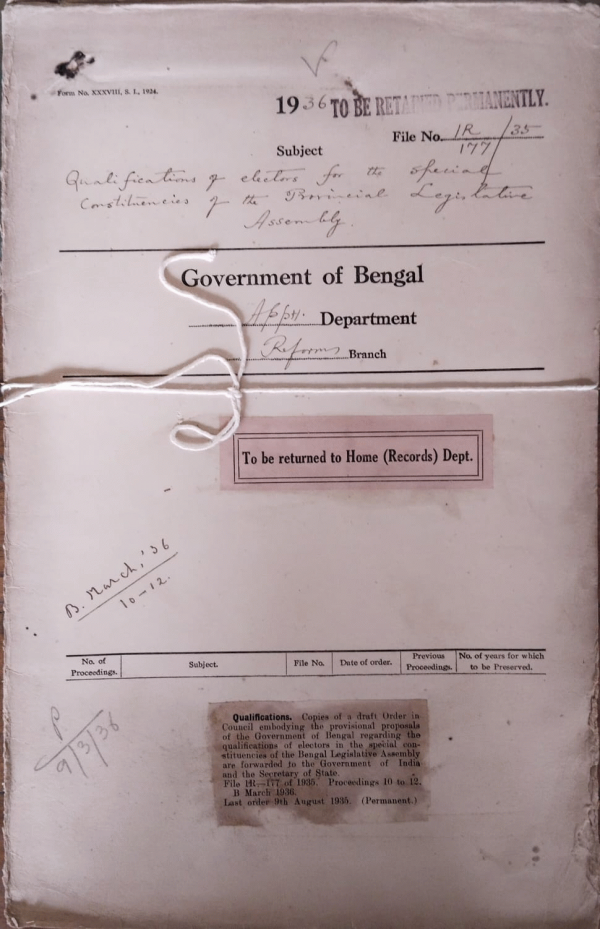 | Rack No. 2, Bundle No. 28, Sl No. 1641 Travelling and daily allowance of witness appearing before the Indian D.C. | Rack No. 2, Bundle No. 28, Sl No. 1642 The manufacture of humans by Indore process. | Rack No. 2, Bundle No. 28, Sl No. 1643 Enquiry of the European association on cretin electoral matters. | Rack No. 2, Bundle No. 28, Sl No. 1644 Qualifications of electoral for the special constituencies of the legislative assembly. | Rack No. 2, Bundle No. 28, Sl No. 1645 Request of Babu B. Mukharji late a Sub. D.C. for allowance of the general provident fund. | Rack No. 2, Bundle No. 28, Sl No. 1646 Creation of a post in the political department and appointment there Mr. E.B. Baker I.C.S. | Rack No. 2, Bundle No. 28, Sl No. 1647 Verification of service before retirement. |