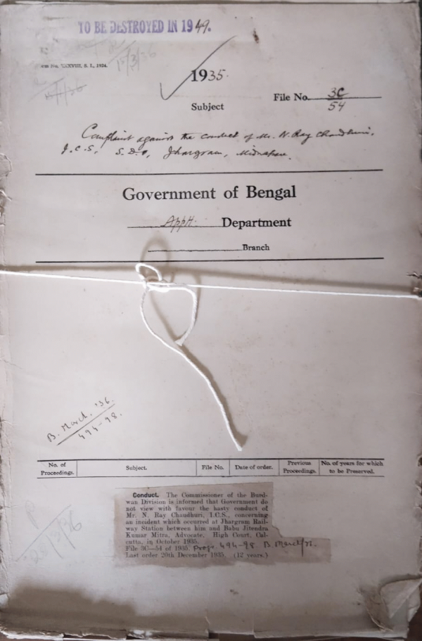 Complaints against the conduct of Mr. N. Raychaudhuri I.C.S. S.D.O. Jhargram Midnapore.