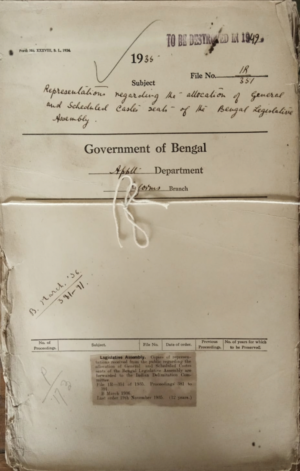 Representation regarding the allocation of general and scheduled east's seats of the Bengal leg. Assembly.