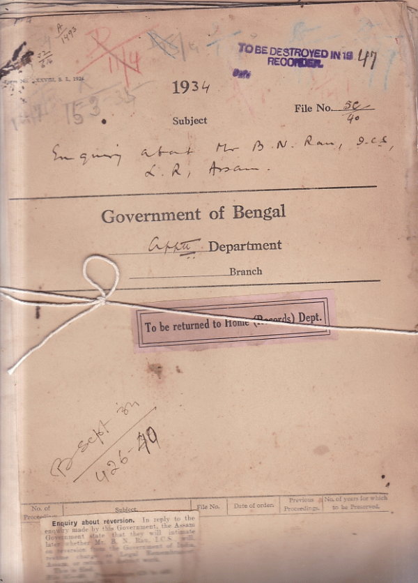Enquiry about Mr. B.N. Rau, I.C.S., L.R. Assam.