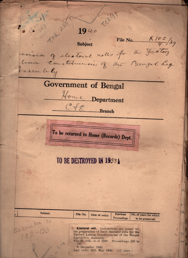 Preparation of electoral rolls for the Factory Labour Constituencies of the B.L.A.