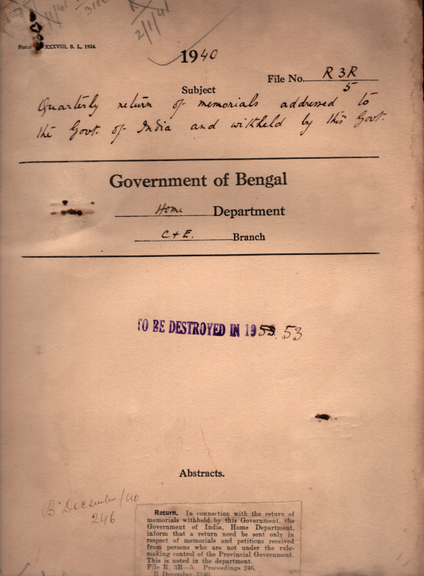 | Rack No. 08, Bundle No. 18; SI No. 1095 Procedure regarding conference of Commissioner’s decisions. | Rack No. 08, Bundle No. 18; SI No. 1096 Motion by Humayun Kabir, M.L.C. under rule 112 of the B.L.C. Procedure. | Rack No. 08, Bundle No. 18; SI No. 1097 Expenditure of increased with the arrangement of the election Tribunals at the Anderson house, Alipore. | Rack No. 08, Bundle No. 18; SI No. 1098 Quarterly return of memorials addressed to the govt. of India and withheld by the govt. | Rack No. 08, Bundle No. 18; SI No. 1099 Re-introduction of Bengal form No. 5 (Memo form). | Rack No. 08, Bundle No. 18; SI No. 1100 Terms of service of Civil govt. Servants granted emergency commissions in his Majesty’s land forces | Rack No. 08, Bundle No. 18; SI No. 1101 Council question by M. Shamsuzzoha, M.L.C. regarding the appointment of a tribunal for the trial Petition. |