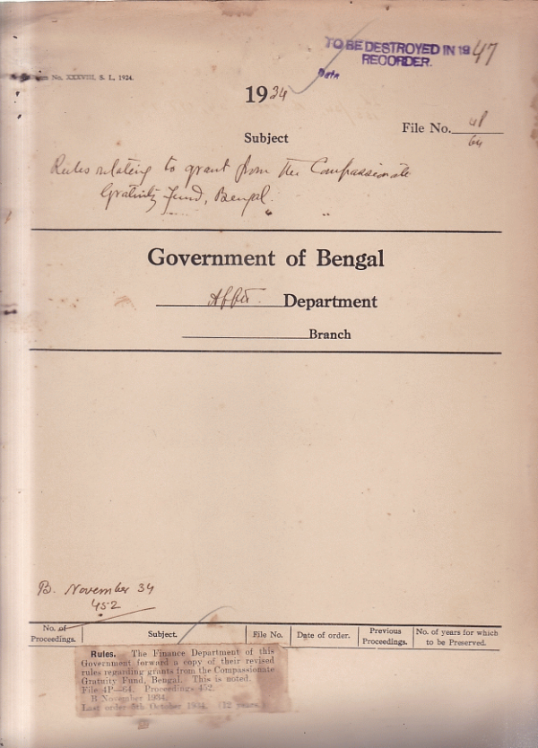 Rules relating to grant from the compassionate gratuity Fund, Bengal.