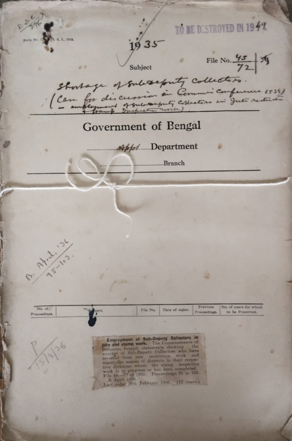 Employment of Sub-Deputy Collectors in Jute and stamps work.