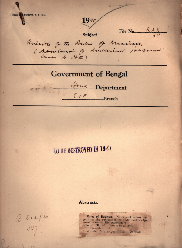 | Rack No. 08, Bundle No. 18; SI No. 1122 Rules under the Bengal Finance Act, 1939. | Rack No. 08, Bundle No. 18; SI No. 1123 Bengal legislative committees of rules. | Rack No. 08, Bundle No. 18; SI No. 1124 Assent of H.E. the governor to the Bengal Patni Taluks regulation Bill, 1940. | Rack No. 08, Bundle No. 18; SI No. 1125 Rules of business under Section 59 of the govt. of Indian Act, 1935. | Rack No. 08, Bundle No. 18; SI No. 1126 Assent of H.E. the governor to the Bengal Shops and establishments Bill, 1940. | Rack No. 08, Bundle No. 18; SI No. 1127 Economy in printing of list of business of Legislature. | Rack No. 08, Bundle No. 18; SI No. 1128 Exclusion of certain dismissed govt. Servants from re-employment in Govt. Service. |