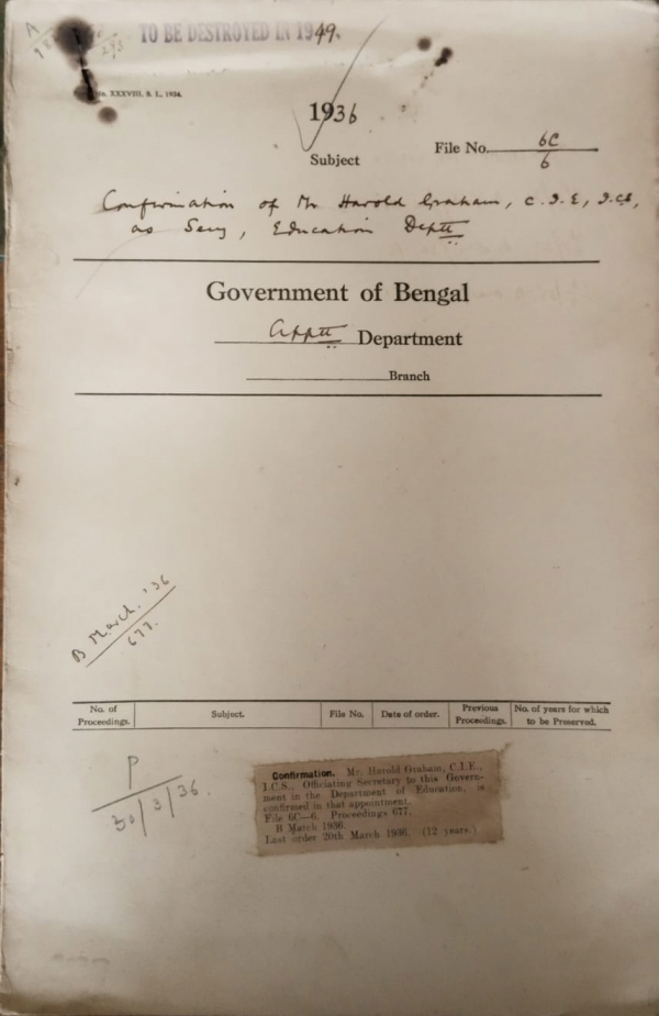 Confirmation of Mr. Harold graham, C.I.E. & I.C.S., as Secretary Education Department.