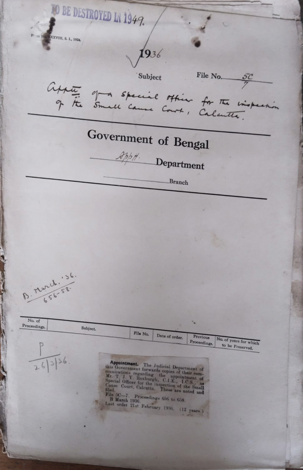 | Rack No. 2, Bundle No. 30, Sl No. 1742 Promotion of Sub- Deputy Collectors to the Selection grade. | Rack No. 2, Bundle No. 30, Sl No. 1743 Employment of temporary staff for election work in the Howrah Collectorate. | Rack No. 2, Bundle No. 30, Sl No. 1744 Address of the news paper the "Hindu, Madras". | Rack No. 2, Bundle No. 30, Sl No. 1745 Appointment of a special officer for the inspection of the small cause court, Calcutta. | Rack No. 2, Bundle No. 30, Sl No. 1746 Statement of net grant and nine months actual under 22 G.A. for 1935-36. | Rack No. 2, Bundle No. 30, Sl No. 1747 Extra grant u/h pay of officers in Military Service. | Rack No. 2, Bundle No. 30, Sl No. 1748 C.Q. by Babu Sutish Chandra Roy Chaudhury regarding Population of the Partially excluded areas in Mymensingh. |