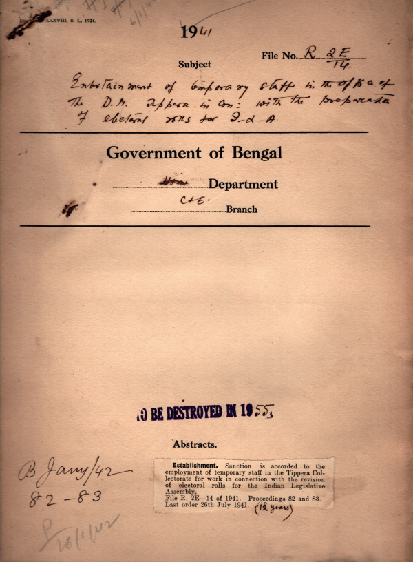 Employment of temporary staff in the Tippera Collectorate for work with the revision of electoral rolls.