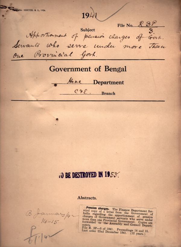 | Rack No. 08, Bundle No. 18; SI No. 1146 Apportionment of A.R.P. Charges expenditure the central and the provinces. | Rack No. 08, Bundle No. 18; SI No. 1147 Paper economy. | Rack No. 08, Bundle No. 18; SI No. 1148 Determination of domicile of govt. servants. | Rack No. 08, Bundle No. 18; SI No. 1149 Apportionment of pension changes of govt. Servants who serve under more than one provincial govt. | Rack No. 08, Bundle No. 18; SI No. 1150 Active service ordinance, 1941 | Rack No. 08, Bundle No. 18; SI No. 1151 Procedure for the re-question of Land, buildings etc. under the defense of India rules. | Rack No. 08, Bundle No. 18; SI No. 1152 Employment of temporary staff under the district Magistrate, Malda, work for electoral rolls. |