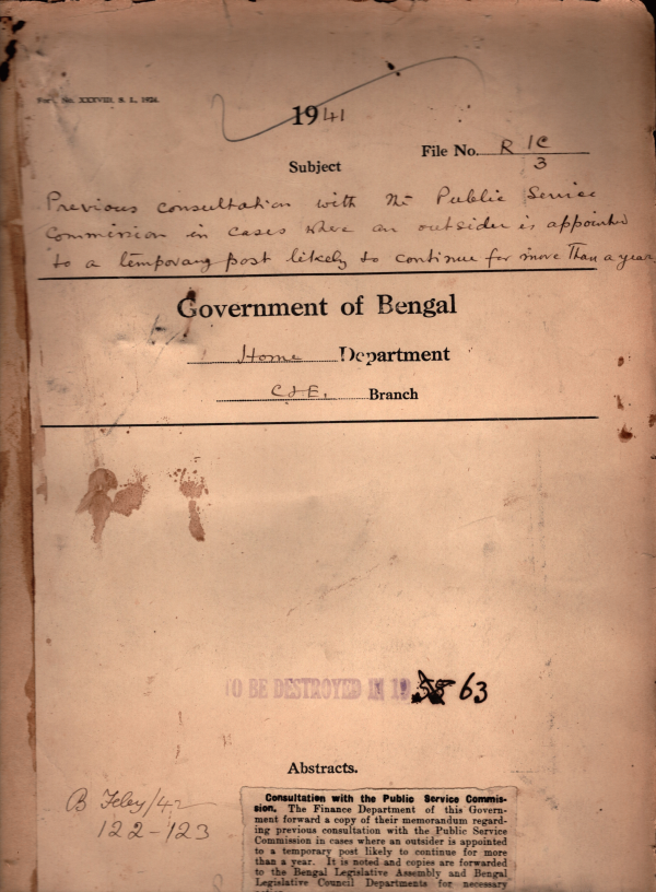 | Rack No. 08, Bundle No. 19; SI No. 1166 Recovery of costs and refund of security deposits in connections with the petition of Rai Bahadur Surendra Narayan Sinha against the election of certain persons to the B.L.C. | Rack No. 08, Bundle No. 19; SI No. 1167 Question of revision of the Scale of pay for the U.D.C. in the B.L.C. Department. | Rack No. 08, Bundle No. 19; SI No. 1168 .Q. by Khan Sahib Abdul Hamid Chowdhury regarding the B.L.C. Powers and Privileges Bill, 1939. | Rack No. 08, Bundle No. 19; SI No. 1169 Previous consultation with the P.S.C. | Rack No. 08, Bundle No. 19; SI No. 1170 Complaint against delay on the part of the various departments of govt. | Rack No. 08, Bundle No. 19; SI No. 1171 Preparation of fresh electoral rolls for the Darjeeling Sadar Tea Garden Labour Constituency of the B.L.A. | Rack No. 08, Bundle No. 26, SI No. 1671 Appointment of committee of the legislature to draft rules of procedure under section 84(1) of the govt. of India Act, 1935. |