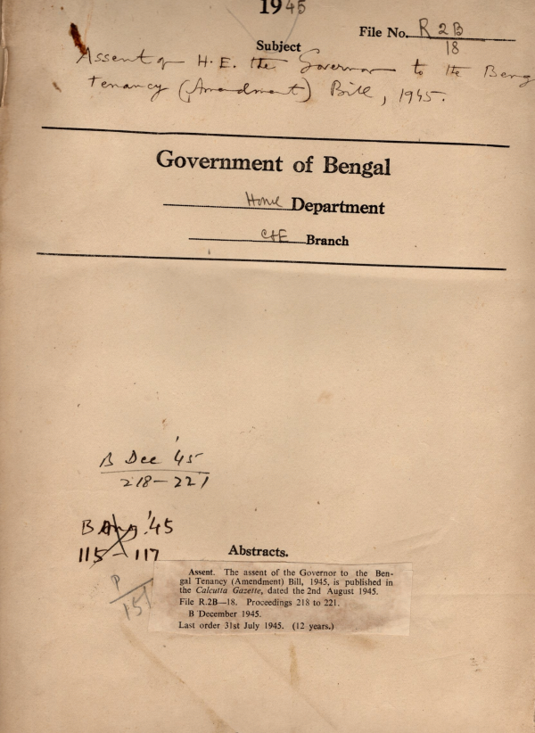 | Rack No. 08, Bundle No. 26, SI No. 1685 Assent of H/E the governor general to the Bengal Slum Improvement Bill, 1945. | Rack No. 08, Bundle No. 26, SI No. 1686 Assent of H/E the governor to the Murshidabad Bill, 1945. | Rack No. 08, Bundle No. 26, SI No. 1687 Assent of H/E the governor to the Bengal Motor Vehicles Tax amendment Bill, 1945. | Rack No. 08, Bundle No. 26, SI No. 1688 Assent of H/E the Governor General to the Bengal Slum Improvement Bill, 1945. | Rack No. 08, Bundle No. 26, SI No. 1689 Supply of Certain information’s to S.I.B. in connection with the Dacca University Convocation Speech by H/E. | Rack No. 08, Bundle No. 26, SI No. 1690 Supply to the new Ministers Copies of memorandum regarding retention by member of the Council of Ministers. | Rack No. 08, Bundle No. 26, SI No. 1691 Amendment of rule 36 of the Assembly Conduct of Election Rules. |