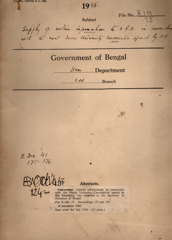 Supply of Certain information’s to S.I.B. in connection with the Dacca University Convocation Speech by H/E.